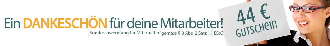 Liebe Chefs! Wir haben noch eine schöne Geschenk-Idee für deine Mitarbeiter eingebaut: Der steuerfreie 44 Euro Sachbezug gemäss § 8 Abs. 2 Satz 11 EStG